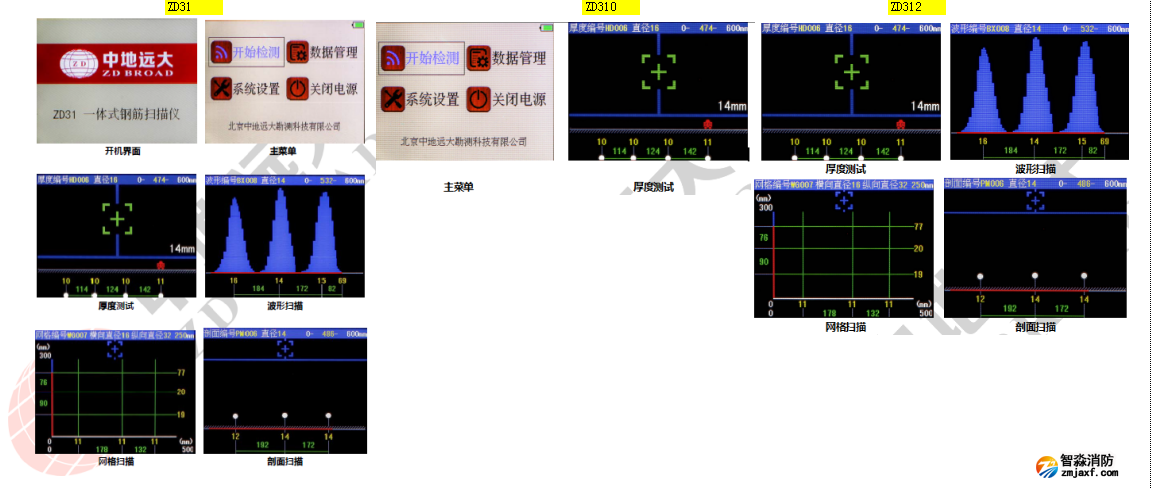 每種檢測模式直觀、精準(zhǔn),準(zhǔn)確顯示鋼筋位置、間距、保護(hù)層厚度在同一顯示屏;