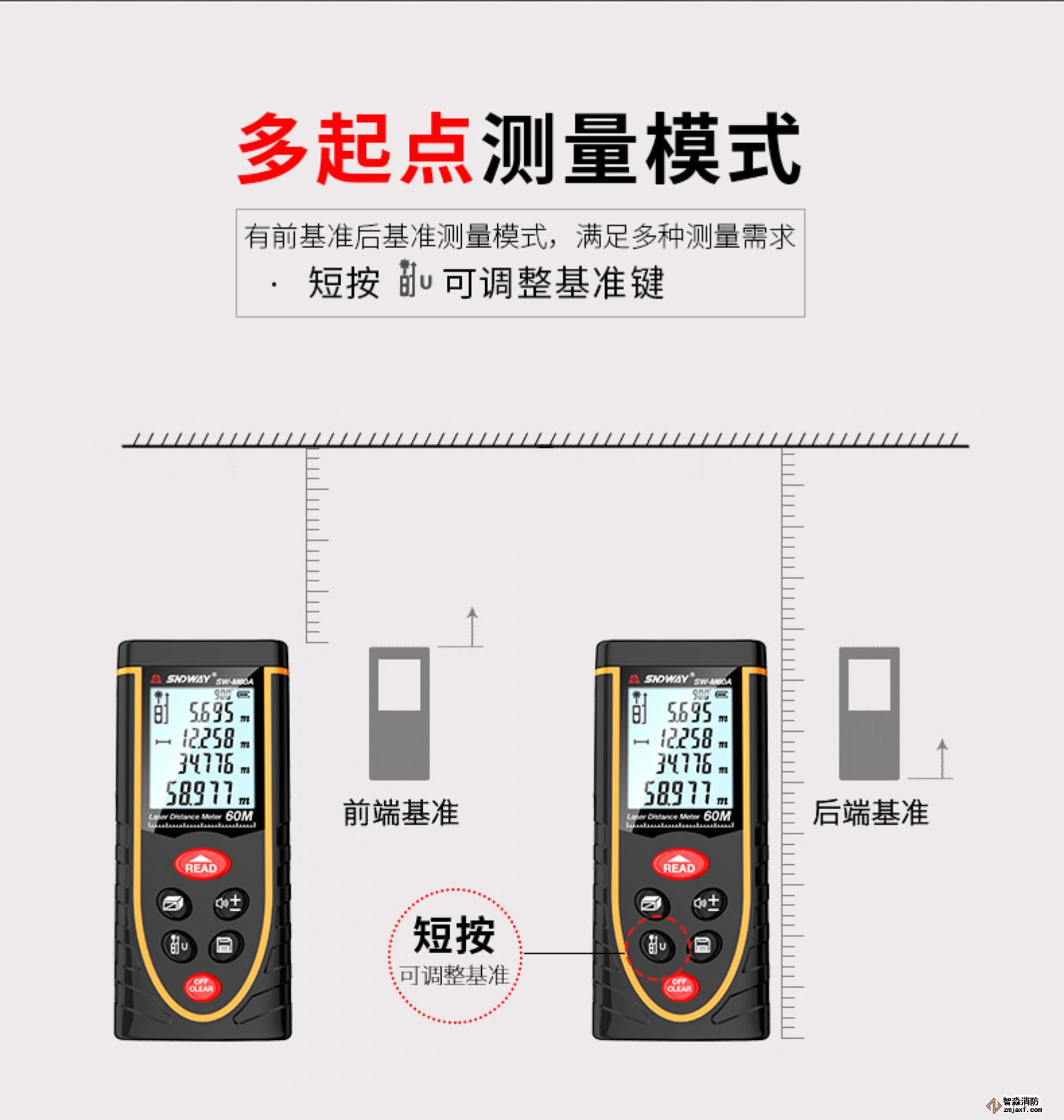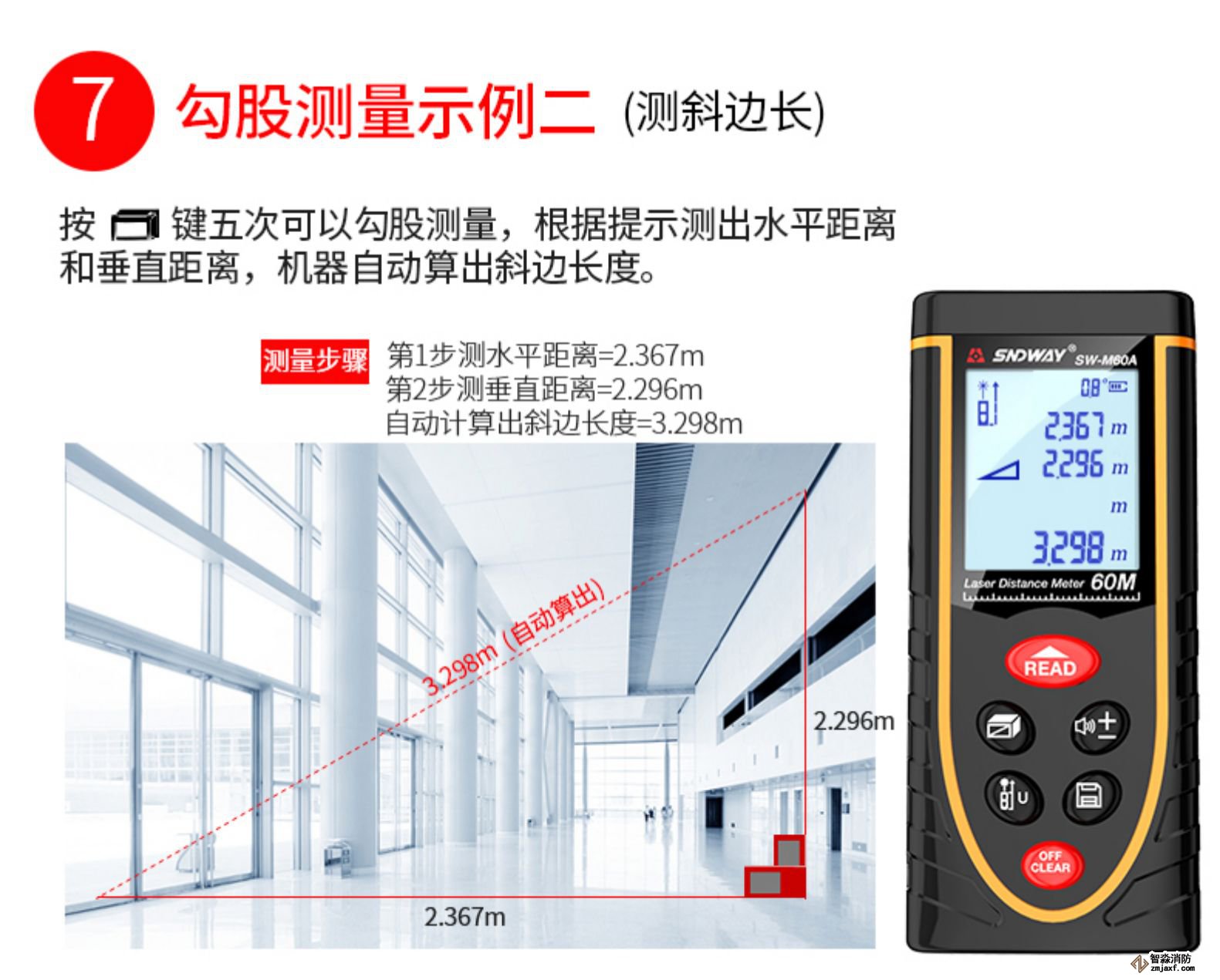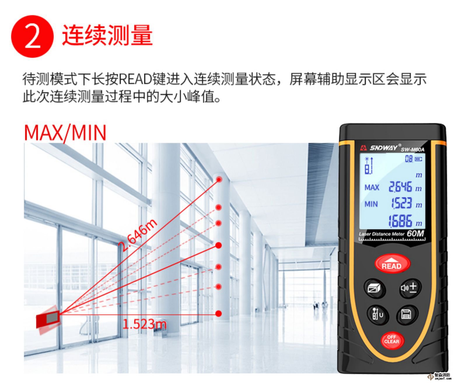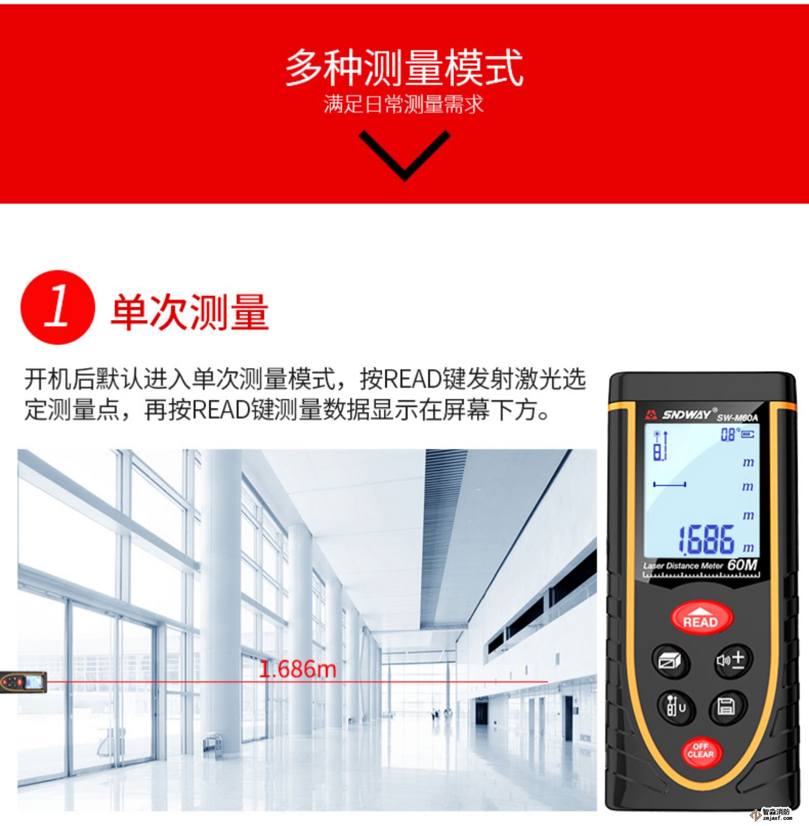 將激活的激光瞄準(zhǔn)目標(biāo)區(qū)域;輕按“測(cè)量”鍵;設(shè)置測(cè)量距離。設(shè)備立即顯示結(jié)果。