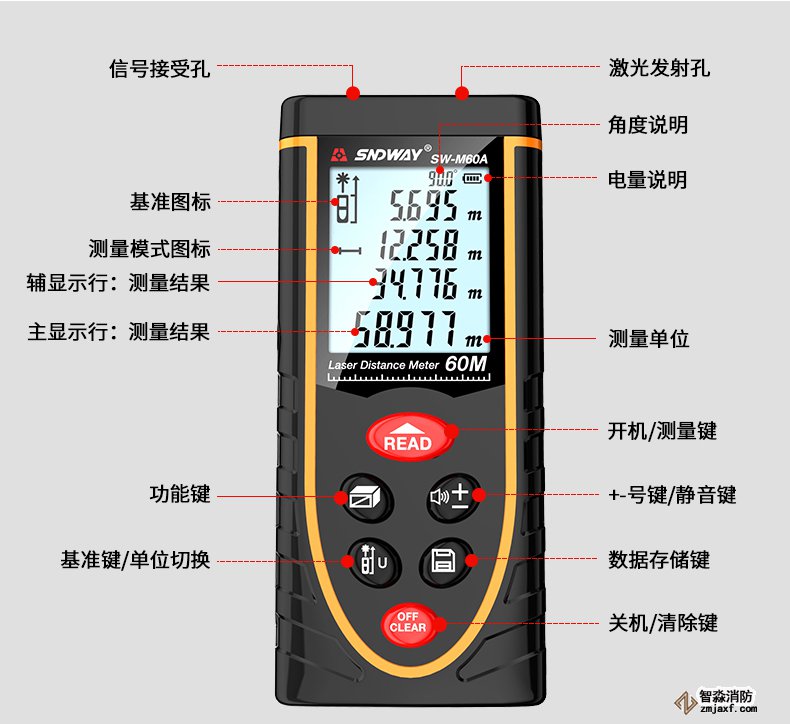 測(cè)距儀是測(cè)量距離的工具,從測(cè)距基本原理,可以分為激光距儀、超聲波距儀和紅外距儀三類。激光測(cè)距儀是目前使用最為廣泛的測(cè)距儀,是利用激光對(duì)目標(biāo)的距離進(jìn)行準(zhǔn)確測(cè)定的儀器。激光測(cè)距儀在工作時(shí)向目標(biāo)射出一束很細(xì)的激光,由光電元件接收目標(biāo)反射的激光束,計(jì)時(shí)器測(cè)定激光束從發(fā)射到接收的時(shí)間,計(jì)算出從觀測(cè)者到目標(biāo)的距離,圖4-1。消防檢測(cè)設(shè)備:m.wfbanger.cn
