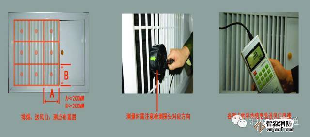 2.加壓送風(fēng)口的風(fēng)速不宜大于7m/s。選取每個(gè)獨(dú)立的送風(fēng)系統(tǒng)或豎井取最有利點(diǎn)檢查。
