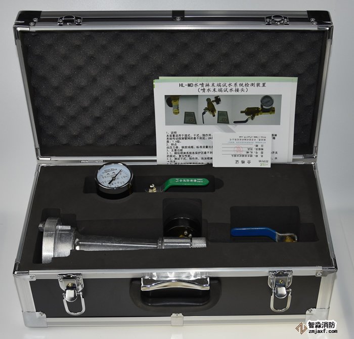 水噴淋末端試水街頭是用于模擬一支噴頭開放,進(jìn)行滅火功能試驗(yàn),噴嘴流量系數(shù):K﹦80,壓力表量程:0-0.4Mpa,精度:2.5級,接頭連接螺紋:ZG1〝
