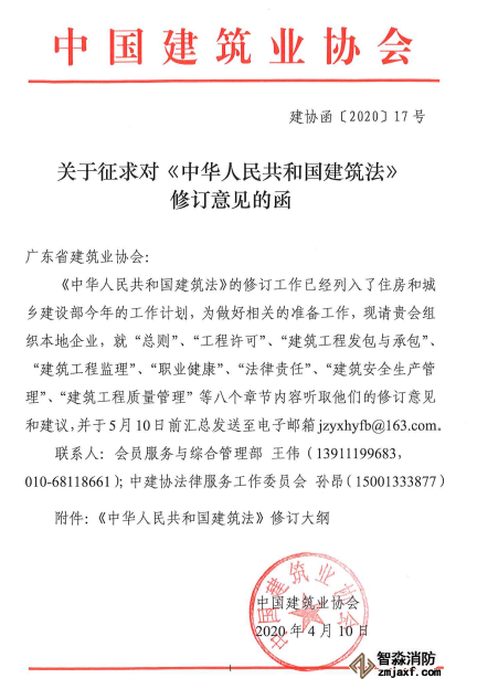中國建筑業(yè)協(xié)會(huì)《關(guān)于征求對(duì)〈中華人民共和國建筑法〉修訂意見的函》