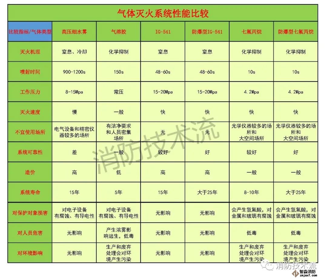 氣體滅火系統(tǒng)性能比較