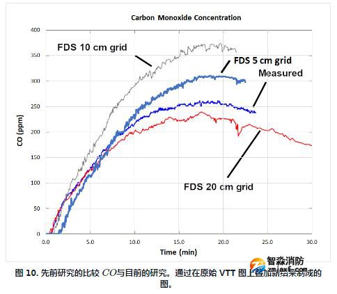 我們重復(fù)了測量煙霧和有毒氣體濃度的 VTT 實驗的模擬。我們使用當前版本的 FDS 和細化網(wǎng)格進行了此計算。