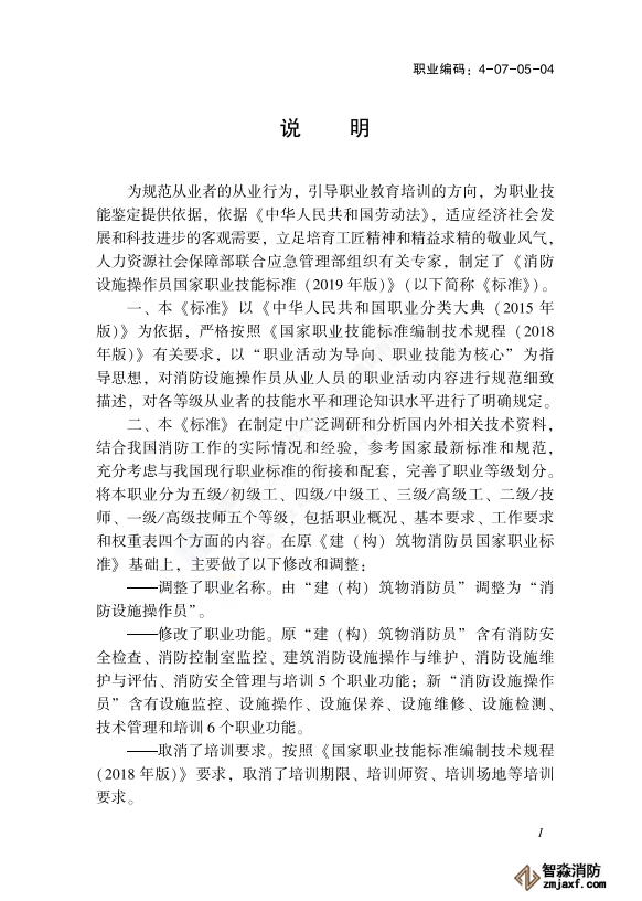 國(guó)家職業(yè)技能標(biāo)準(zhǔn)(消防設(shè)施操作員)
