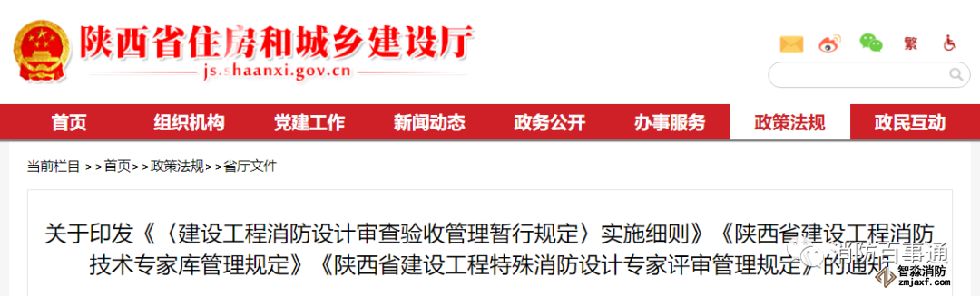 陜西實施住建部第51號令,印發(fā)了《〈建設(shè)工程消防設(shè)計審查驗收管理暫行規(guī)定〉實施細(xì)則》、《陜西省建設(shè)工程消防技術(shù)專家?guī)旃芾硪?guī)定》、《陜西省建設(shè)工程特殊消防設(shè)計專家評審管理規(guī)定》三份文件。