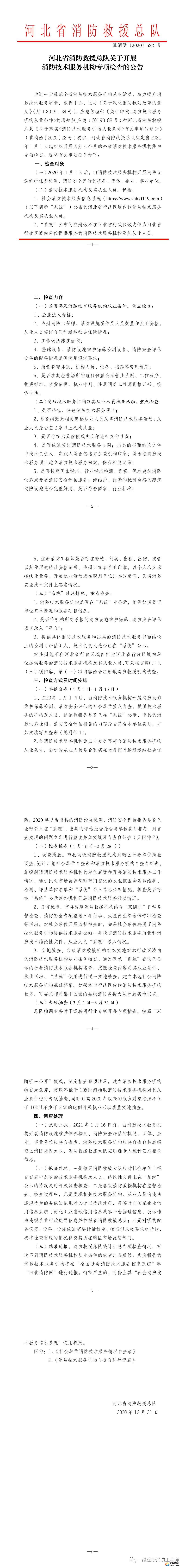 【河北省消防總隊(duì)】1月16日-2月28日開(kāi)展消防技術(shù)服務(wù)機(jī)構(gòu)專(zhuān)項(xiàng)檢查