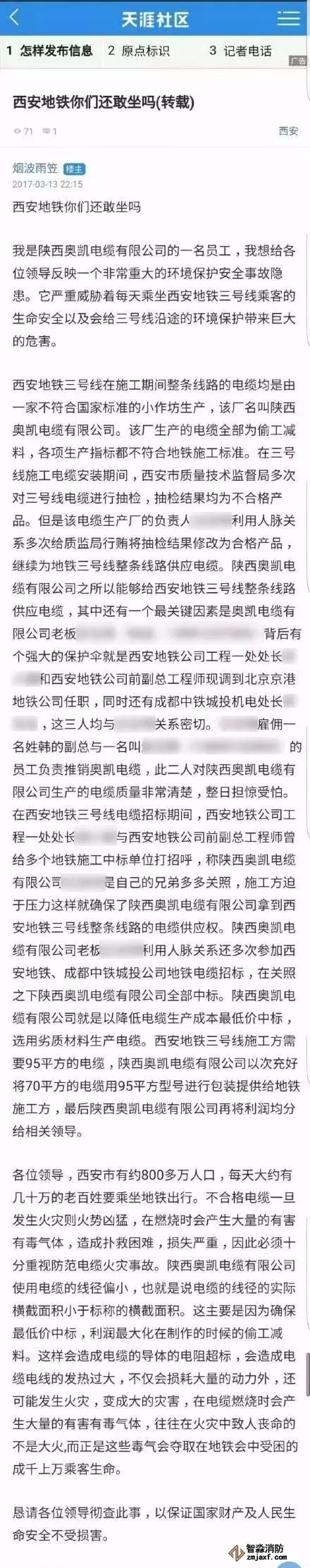 1. 2017年3月15日,有網(wǎng)友發(fā)帖質(zhì)疑地鐵三號線電纜相關(guān)問題: