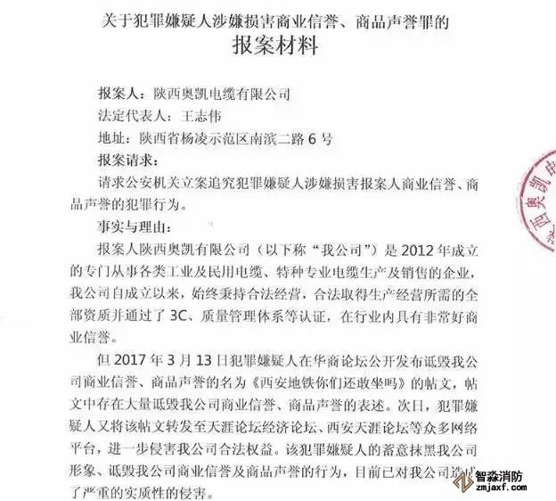 舉報帖發(fā)出后,陜西奧凱電纜有限公司不僅不承認(rèn)問題,還反咬一口,聲稱該帖文中的不實(shí)言論損害了公司的聲譽(yù),造成了極其嚴(yán)重的惡劣影響。
