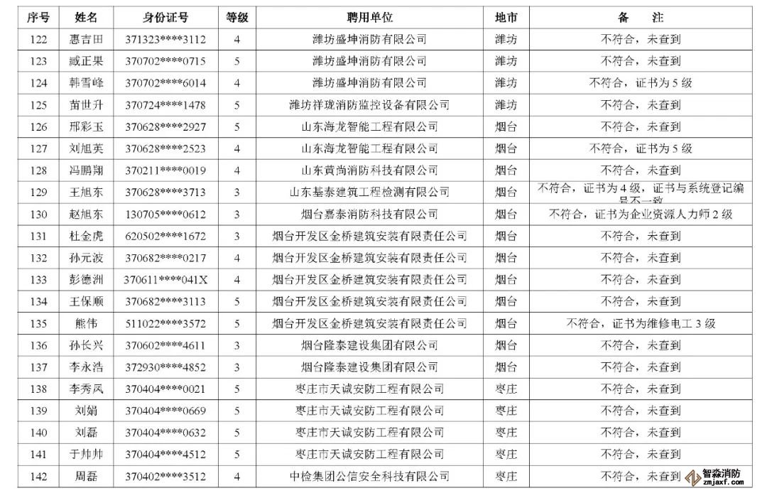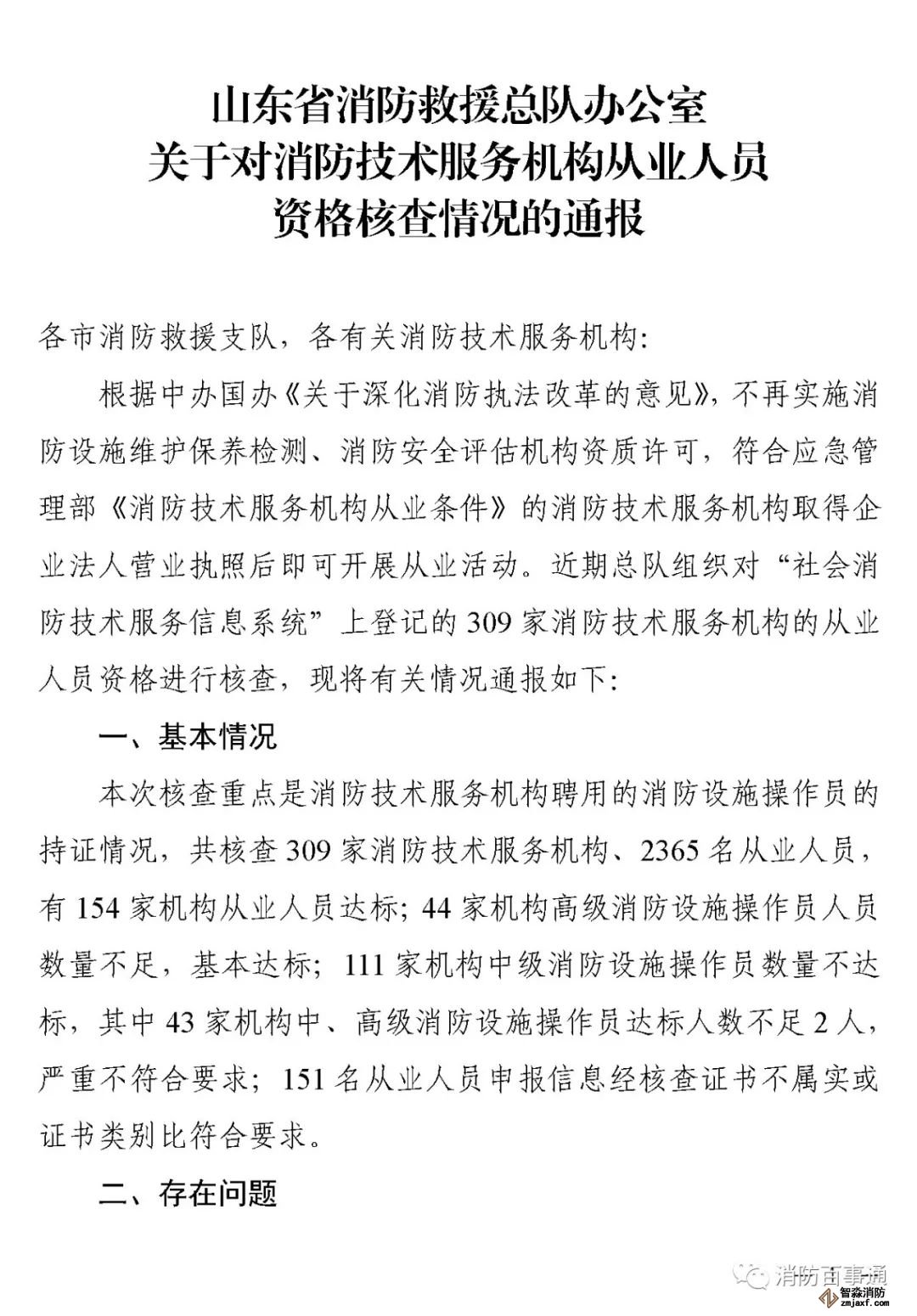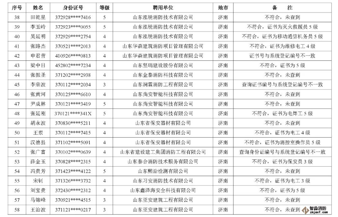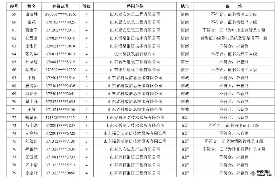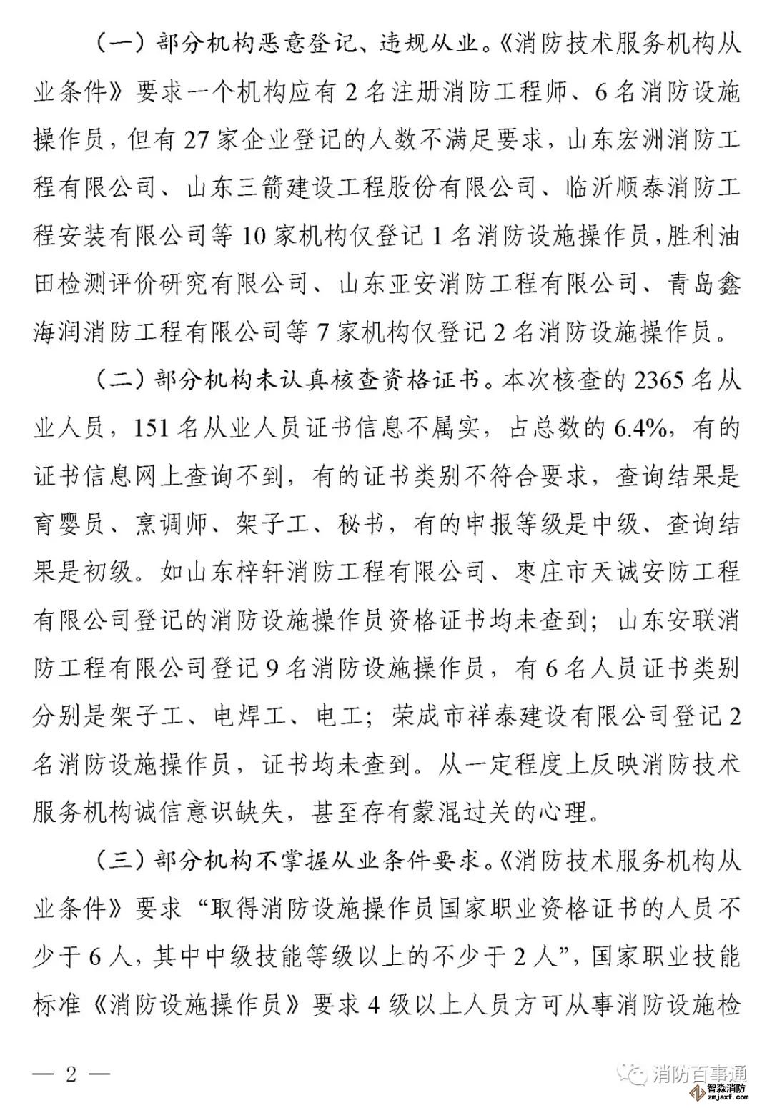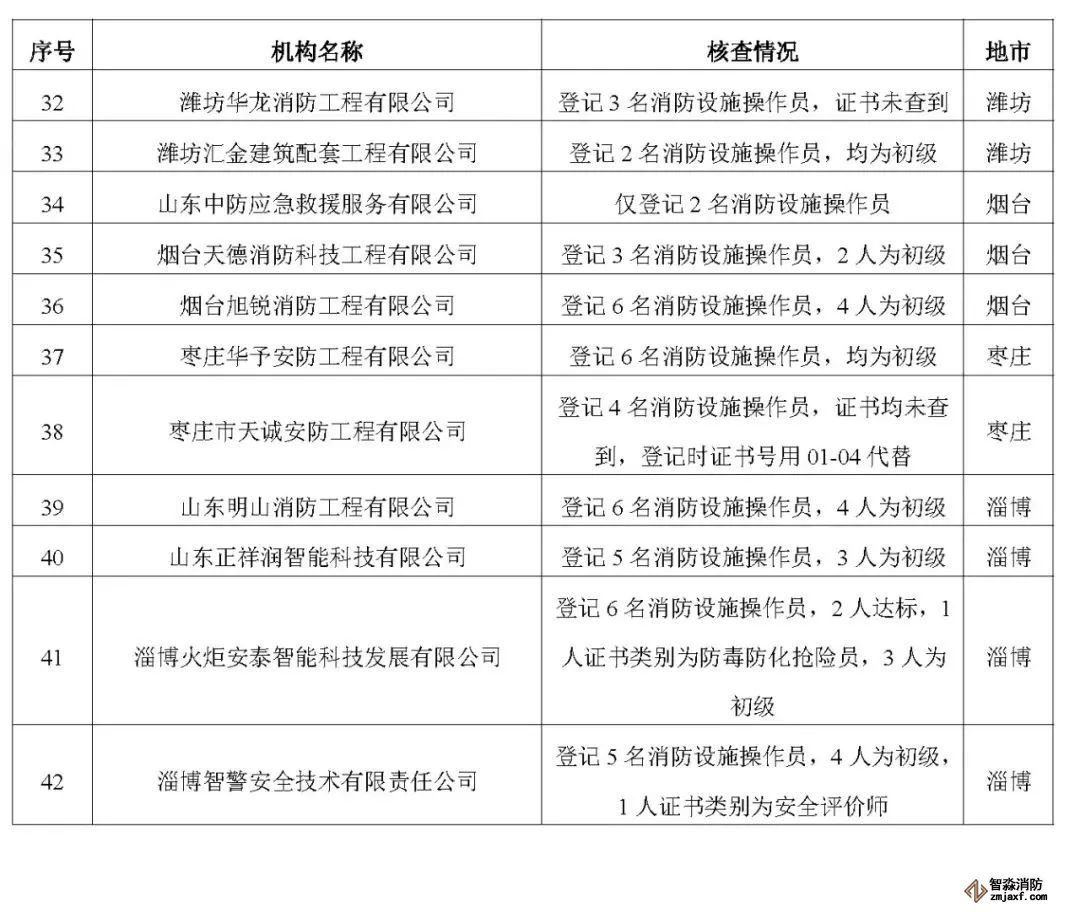 山東:消防技術(shù)服務(wù)機構(gòu)從業(yè)人員資格核查情況通報