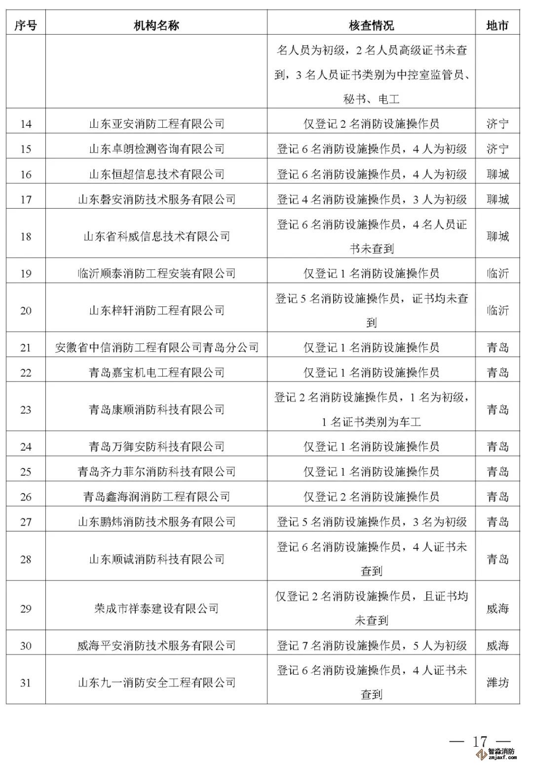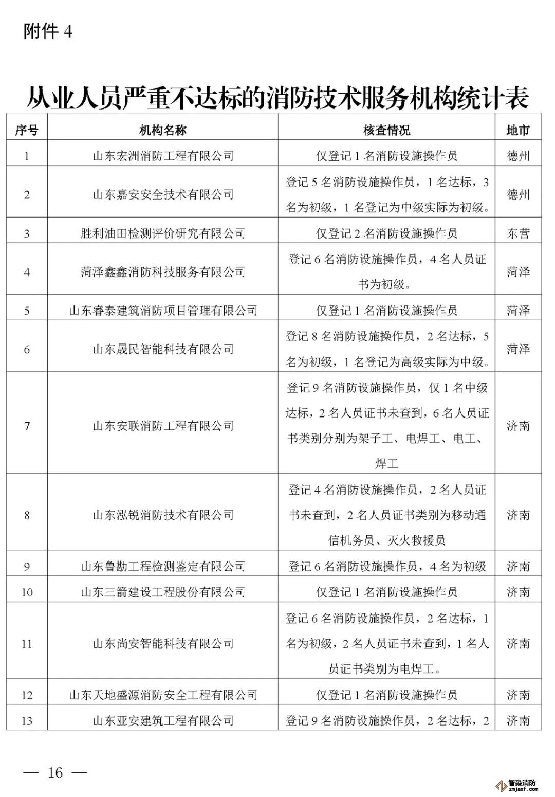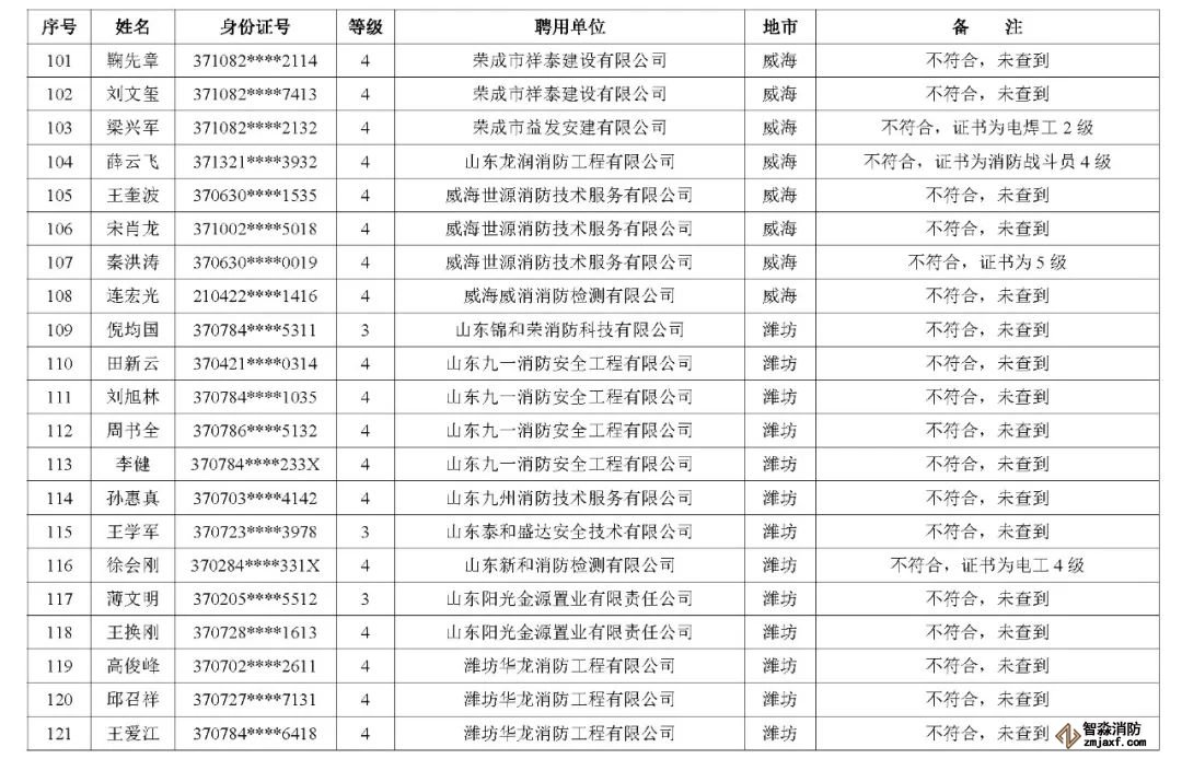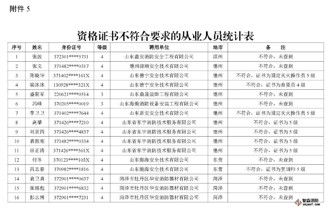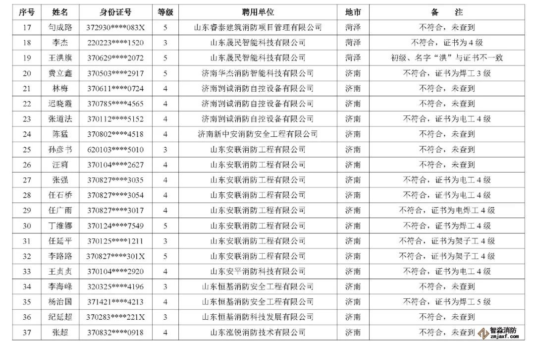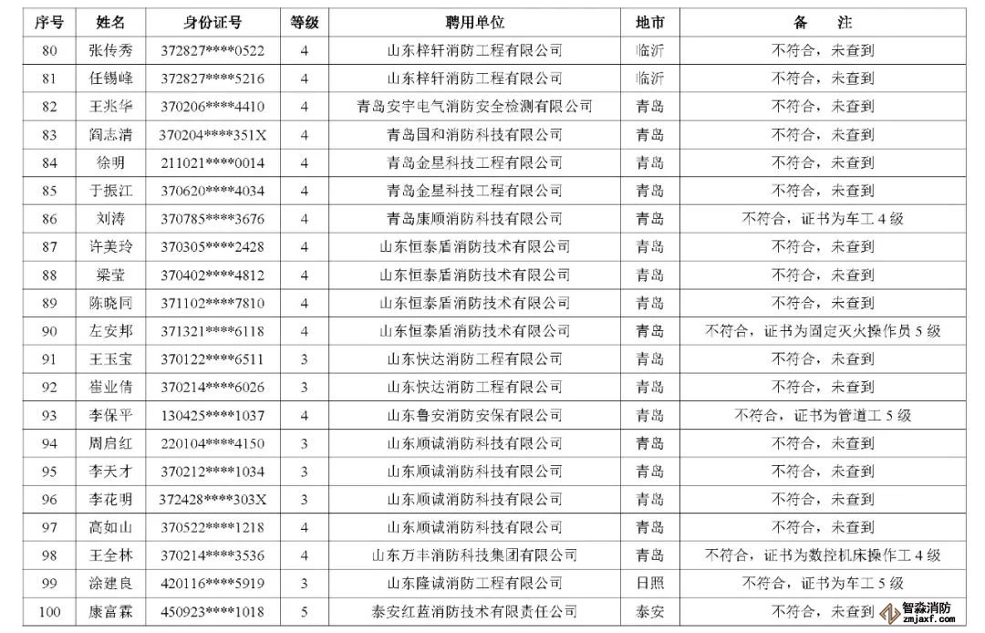 山東:消防技術(shù)服務(wù)機構(gòu)從業(yè)人員資格核查情況通報
