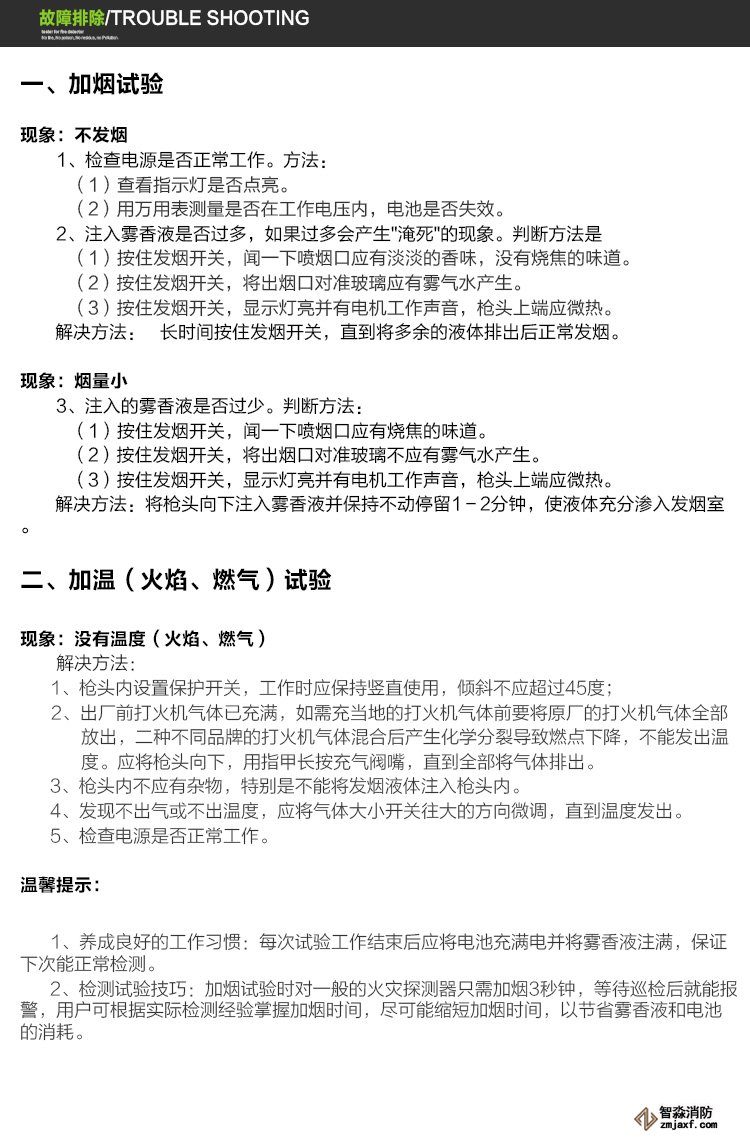 ◎發(fā)煙液體采用低液位報警功能。
