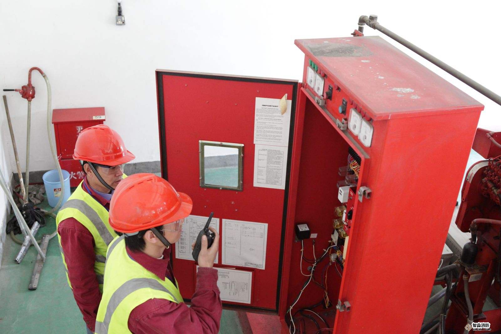 3、檢查消防供水設施:消防水池外觀,消防水箱外觀,消防水泵及控制柜工作狀態(tài),穩(wěn)壓泵、增壓泵、氣壓水罐工作狀態(tài),水泵結合器外觀、標識,管網控制閥門啟閉狀態(tài),泵房工作環(huán)境。