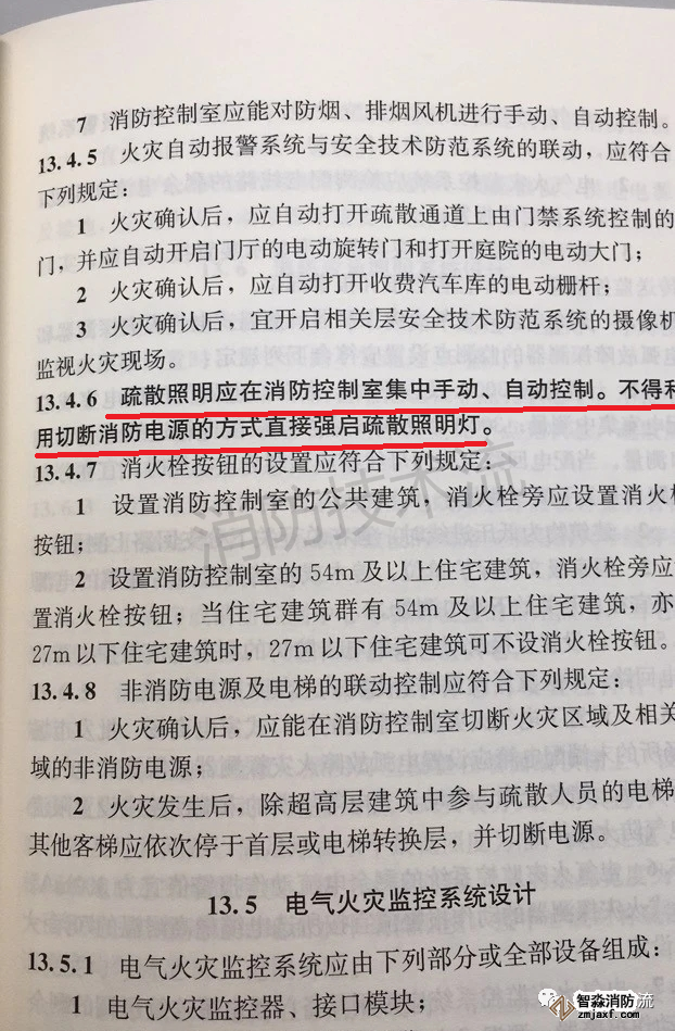 其中第13.4.6條對(duì)應(yīng)急疏散照明的控制方式提出了明確的規(guī)定: