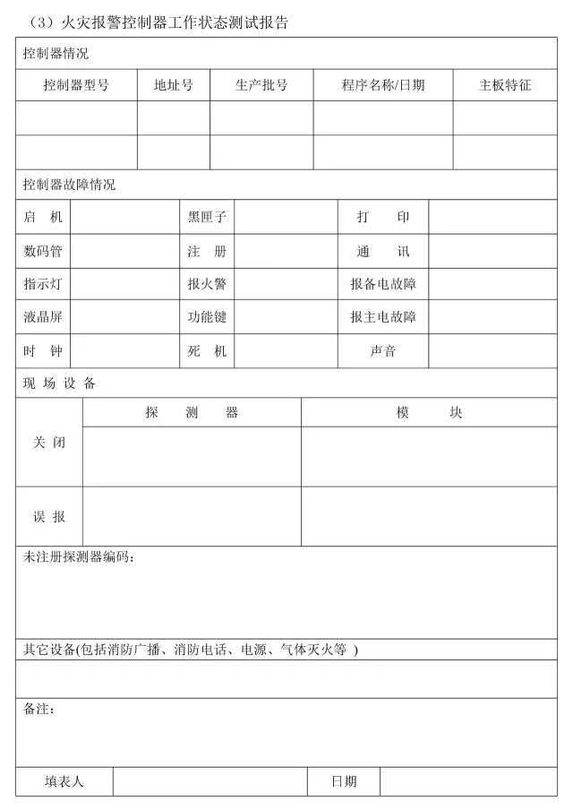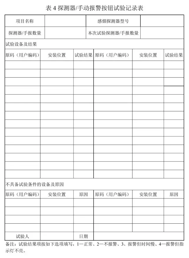 (2)現(xiàn)場探測器和手動報(bào)警按鈕每季度檢測一次,每年的第一次和最后一次全部檢測,其余每次抽測總數(shù)的10%且不能重復(fù)。