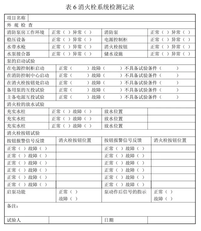 (1)外觀檢測。檢測室內(nèi)外消火栓給水管道、消防水池/水箱/穩(wěn)壓裝置、消火栓水槍及水帶、消火栓按鈕、消防水泵及各類管網(wǎng)閥門等是否正常。