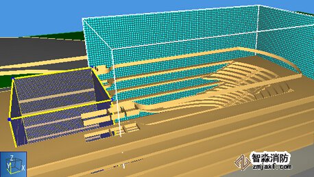 -PyroSim提供的模型建立主要為建立網(wǎng)格、材料定義等過程,然后得到一個完整正確的消防模擬模型。