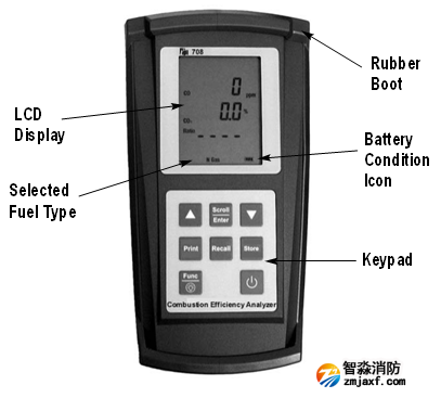 Func功能鍵用于選擇708的功能模式,讓您可以設(shè)定708作為一個燃燒分析儀,壓力表,溫度計(jì),或可燃檢漏儀。此外,該功能鍵可用來訪問日期/和時間顯示。有關(guān)功能鍵的更多信息見第6條,