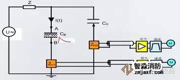 一旦被試電纜發(fā)生局部放電,耦合電容Ck瞬時對Cx充電,形成高頻的脈沖電流波形,脈沖電流波形達到納秒級別,其頻譜高達百兆以上,脈沖電流的幅值大小、發(fā)生的頻度反映電纜內部局部放電的嚴重程度。