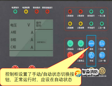 1.消防水泵控制柜在平時(shí)應(yīng)使消防水泵處于自動啟泵狀態(tài)【圖示6】;
